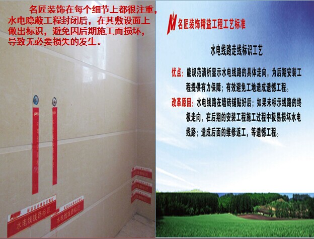 • 測量水平度,安裝好名匠專用連體底盒,線路作業完成后及時封上保護蓋